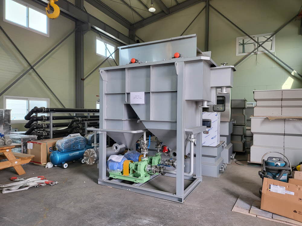 - 응집반응조부터 가압부상조 까지 바로 연결되어 있어 운송중에 미세플럭 깨질 위험이 없음.